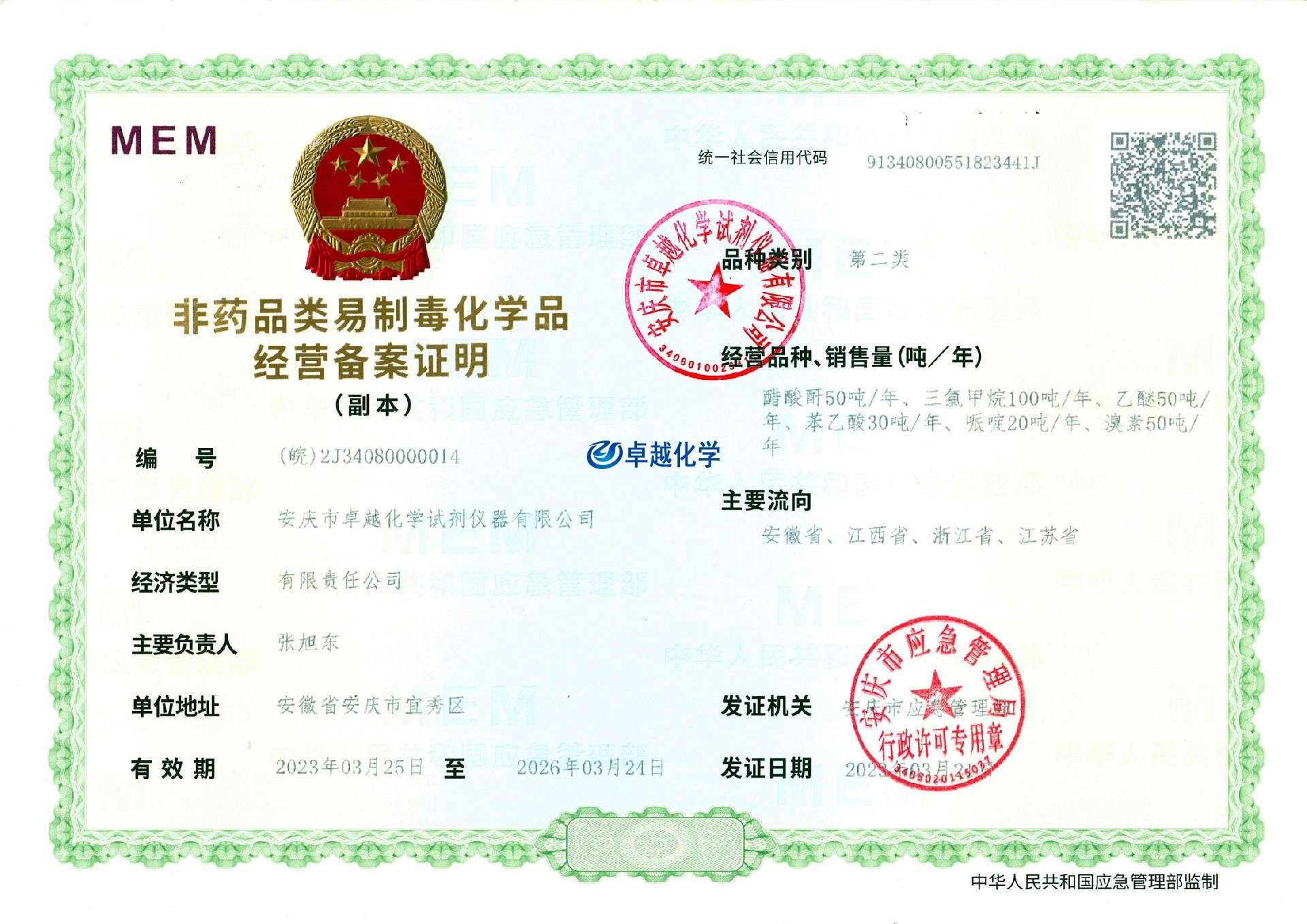 安慶市卓越化學試劑儀器有限公司